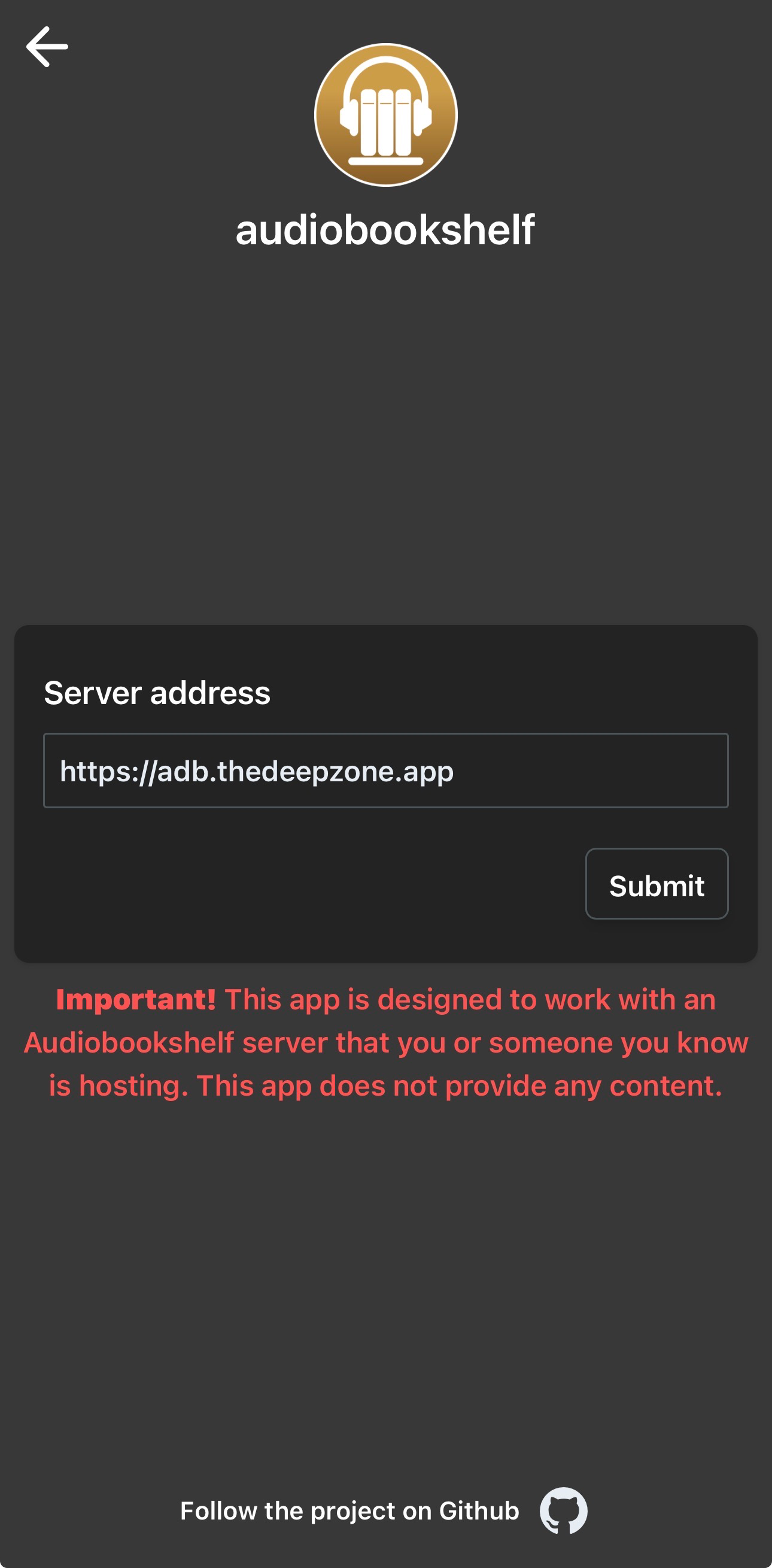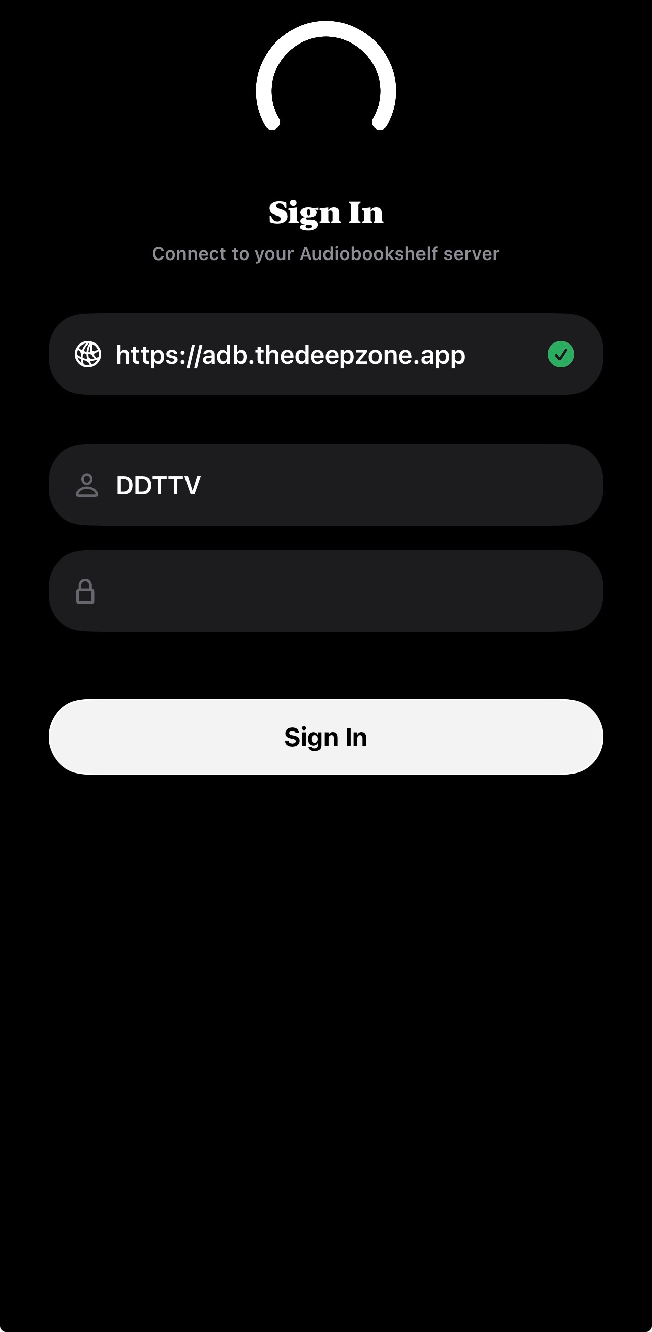 https://adb.thedeepzone.app - Sign in with your Audiobookshelf Username and Password.