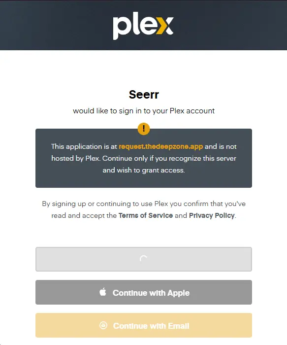 request.thedeepzone.app(not by Plex). - Continue only if you recognize it.