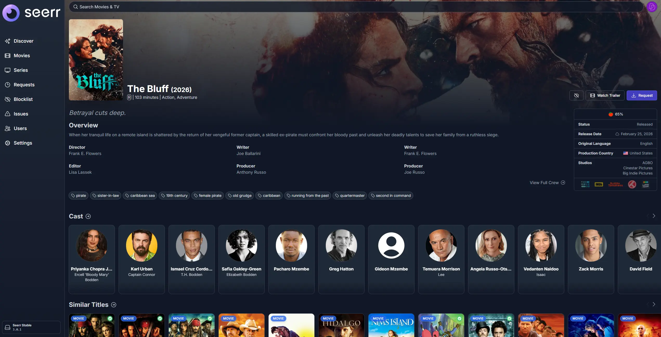 Before you request anything, Seerr shows quick “at a glance” availability indicators on posters: