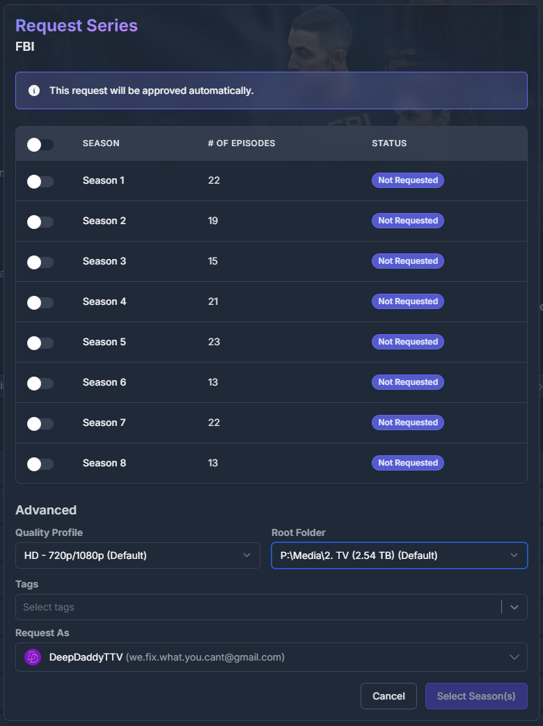 Step 7: Request a TV Show (Select Seasons)